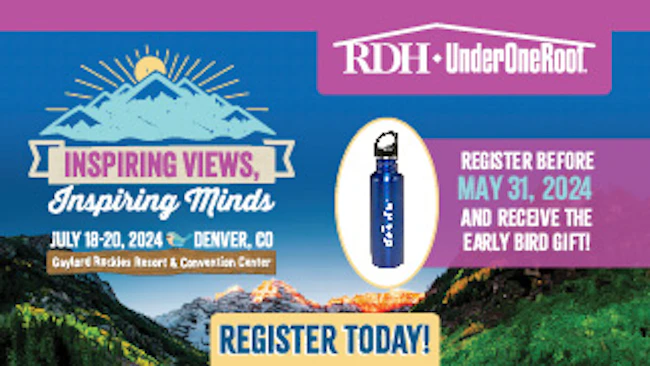 | | | | Sponsored | | | | Early Bird ends May 31st. We can promise you’ve never attended anything like RDH Under One Roof. Don’t miss this 3-day action packed event offering quality dental hygiene education. Learn, network, and HAVE FUN with us in Denver, CO this July! |