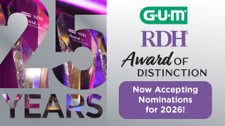 | | | | | | | Sponsored | | | | Nominate yourself or a colleague for the prestigious GUM | RDH Award of Distinction! Six categories! For an unprecedented 25 YEARS, we've been exclusively honoring and celebrating dental hygienists for their incredible contributions to their communities and the Dental Hygiene profession. Don't miss out! |